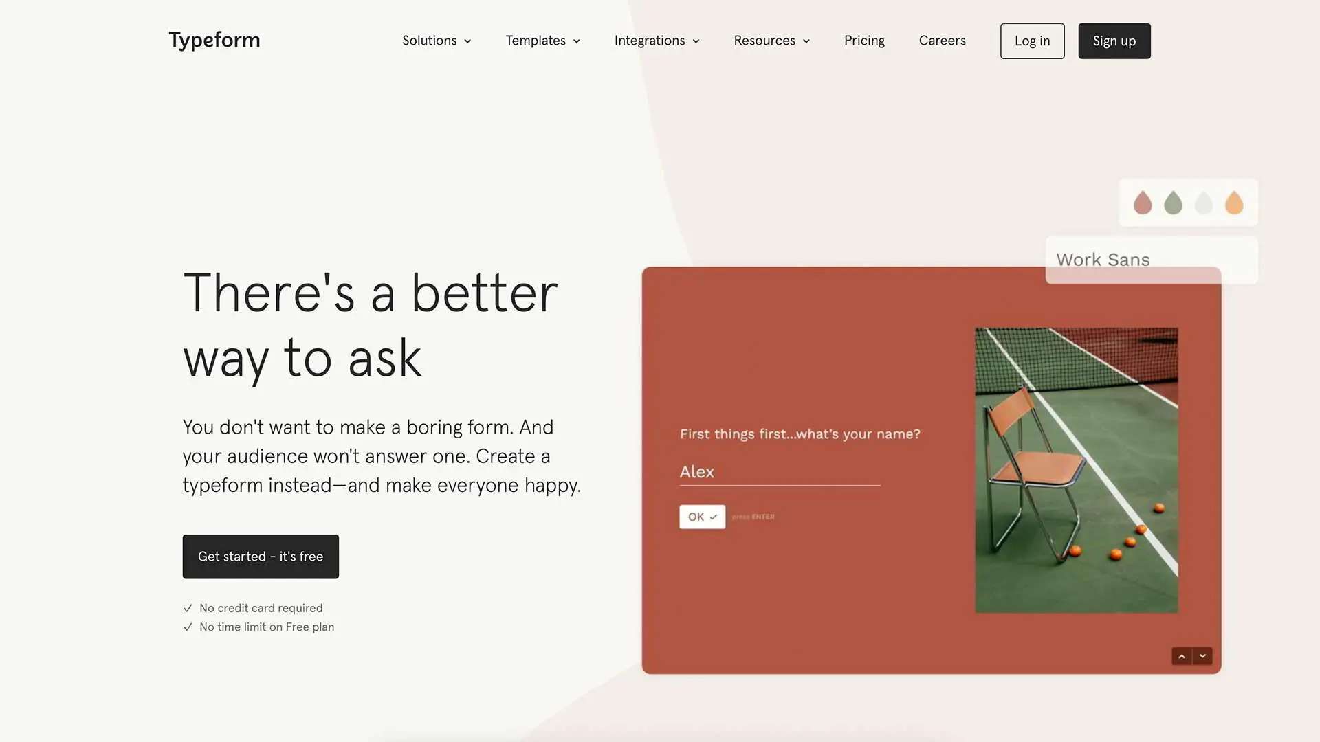 - Typeform’s intake forms, unlike more standard pop-ups, are genuinely elegant and don’t seem like adverts at all.